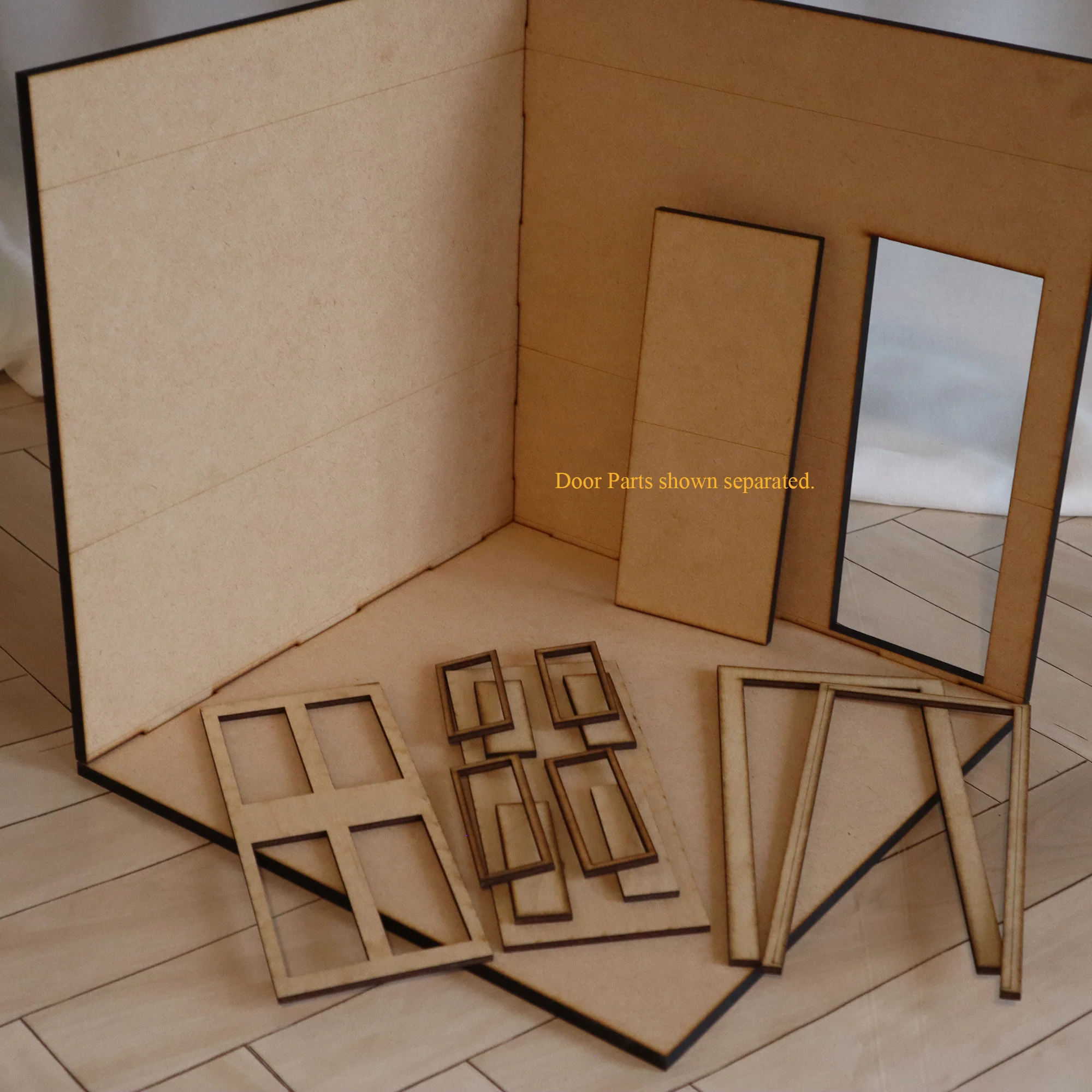 And the Customize Add-On. Since our kits are made to order, use this option with the Plain kit to use your own premade or standard doll house windows and doors. Specify in the comments of your order the size, wall and orientation of the opening. (Measure carefully, we can only cut once, and we do not accept returns for custom items.).